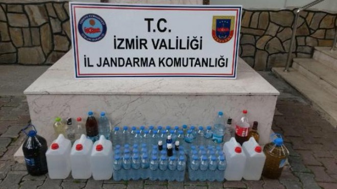 İzmir İl Jandarma Komutanlığı ekipleri, geçen pazartesi günü, Kemalpaşa'nın Kazımpaşa Mahallesi'nde kontrol ettiği bir hafif ticari araçta 100 şişe kolilenmiş sahte viski ile Tütün ve Alkol Piyasası Düzenleme Kurumu'na (TAPDK) ait 108 adet bandrol ele geçirdi. Araç sürücüsü O.A., gözaltına alındı. Soruşturmayı derinleştiren jandarma ekipleri, Balçova ilçesindeki bir evde, kaçak içki imal edildiğini belirledi. Operasyon düzenleyen ekipler, evdeki A.A.'yı gözaltına aldı. Evde yapılan aramada 72 litre sahte alkollü içki ve içki yapımında kullanılan alkol ile anason ele geçirildi. A.A. da gözaltına alındı.