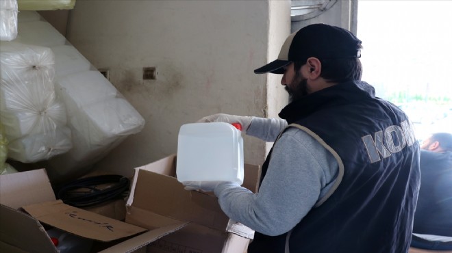 İzmir'in Bornova ilçesinde sahte içki üretildiği iddia edilen depoya yapılan operasyonda iki kişi gözaltına alındı.