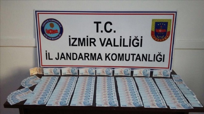 İzmir'de bir otomobilde yapılan aramada, 16 bin 350 lira sahte para ele geçirildi, bir kişi tutuklandı.