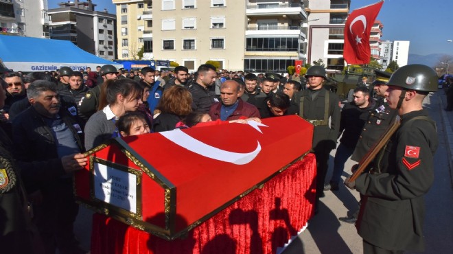 Evli ve 4 çocuk babası olan Uzman Çavuş Taşar için bugün ikindide Gaziemir'deki 15 Temmuz Şehitler Camii'nde askeri cenaze töreni düzenlendi. Törene şehit Uzman Çavuş Taşar'ın annesi Ceylan Taşar, babası Tahsin Taşar, eşi Kader Taşar (34), çocukları Nur Hasret Taşar (12), Işın Su Taşar (10), Yunus Emre Taşar (9), Ceylan Su Taşar'ın (5) yanı sıra İzmir Valisi Yavuz Selim Köşger, Ege Ordusu ve Garnizon Komutanı Korgeneral Kemal Yeni ile siyasi parti temsilcileri katıldı. Şehidin çocuklarının, tabuta sarılarak 'Baba bizi bırakma' diyerek, gözyaşı dökmeleri yürekleri dağladı. Şehit Uzman Çavuş Taşar'ın cenazesi, kılınan namazın ardından tören mangası tarafından bir süre omuzlarda taşınıp, cenaze aracına konuldu. Şehidin çocukları, babalarının tabutu taşınırken selam durdu. Şehit Taşar'ın cenazesi Kadifekale Hava Şehitliği'ne götürülüp, toprağa verildi. (DHA)