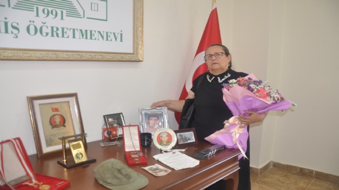 İzmir'in Ödemiş ilçesinde, şehit Piyade Onbaşı Ahmet Akbay'ın annesi Fatma Akbay oğlu anısına ahşap boyama sergisi açtı.
