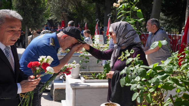İzmir'de şehit aileleri, Kurban Bayramı arifesinde yakınlarının mezarlarına yaptıkları ziyarette duygusal anlar yaşadı.