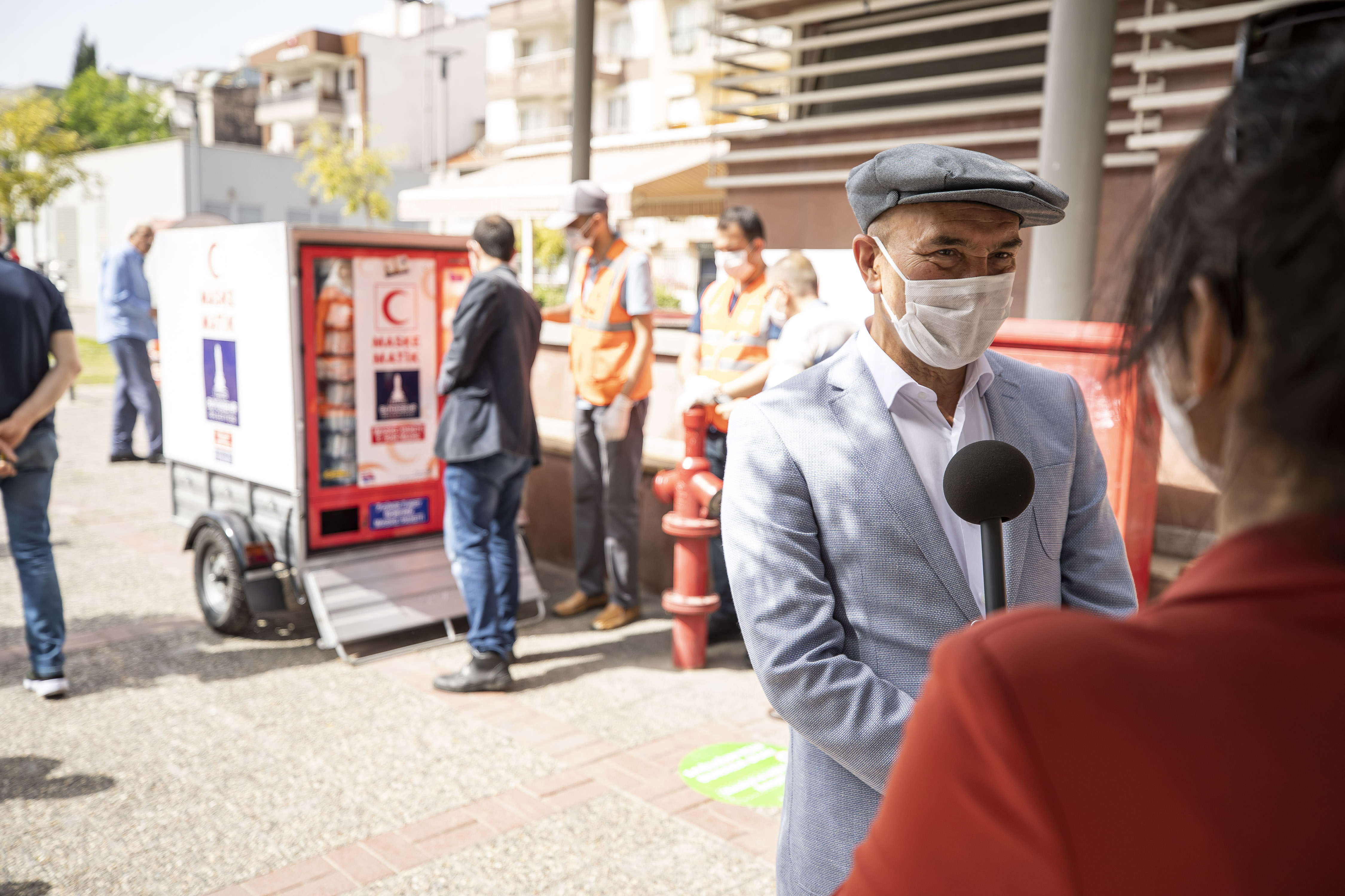 İzmir Büyükşehir Belediye Başkanı Tunç Soyer, kentin 19 noktasında maskematiklerin bulunduğunu hatırlatarak bu uygulamayla yurttaşların ücret ödemeden steril maskelere ulaştığına dikkat çekti. Seyyar maskematikleri daha da yaygınlaştıracaklarını kaydeden Soyer, Buca’nın ardından iki farklı noktada daha gelecek hafta içerisinde seyyar maskematiklerin devreye gireceğini ifade etti. Soyer, “Bunun güzelliği her yerde, dağ başında bile kullanılabiliyor olması. Elektrik olmayan yerde jeneratör ile çalışıyor. Her yerde vatandaşa hizmet götürebileceğimiz pratikliğe erişmiş olduk. Bu çok kıymetli. Bizim bulduğumuz bu yöntemle vatandaşa maskeyi kolaylıkla ulaştırmış oluyoruz. Devam edeceğiz” dedi.