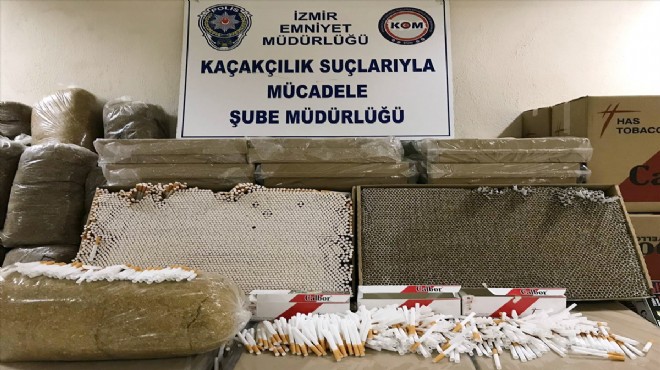 İzmir'in Karabağlar ilçesinde bir depoya düzenlenen operasyonda, 747 bin 600 adet doldurulmuş kaçak sigara ile 25 bin makaron ve yaklaşık 1 ton tütün ele geçirildi.