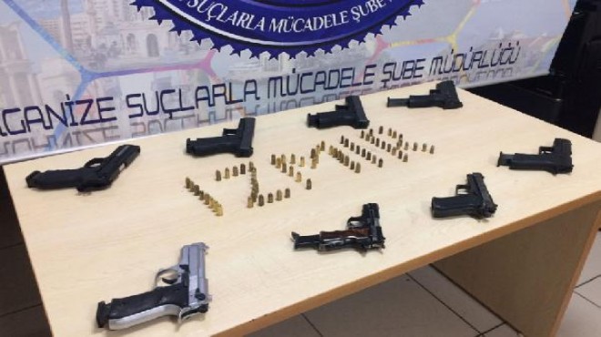 Organize Suçlarla Mücadele Şube Müdürlüğü ekipleri, yapılan istihbarat çalışmasında Konya ve Karadeniz Bölgesi'nden temin edilen silahların İzmir'de kaçak satışının yapıldığı bilgisi üzerine harekete geçti. Torbalı ve Aliağa ilçeleri ile Afyonkarahisar'da belirlenen adreslere düzenlenen eş zamanlı baskınlarda 7 tabanca ve 132 tabanca fişeği ele geçirildi.