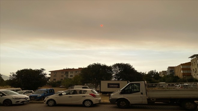 GERÇEKİZMİR - İzmir güne sıra dışı bir görüntüyle uyandı. Kentte sabah saatlerine 'sepya' bir görüntü baskın kalırken, güneşin kızıl görüntüsü ve bazı bölgelerde yayılan yanık kokusu panik yarattı.