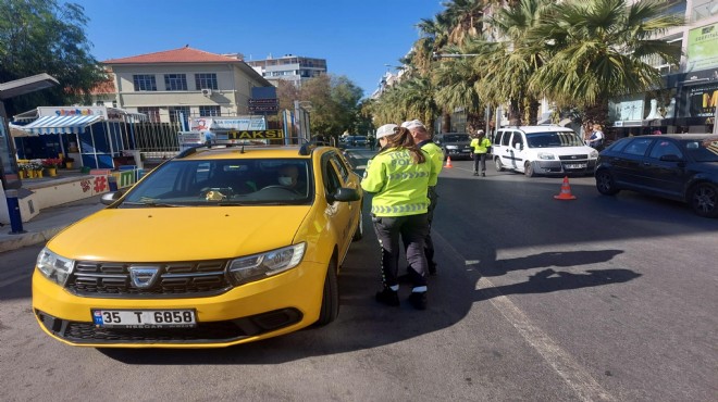 İçişleri Bakanlığı'nın geçen Salı günü 81 ilin valiliğine gönderdiği 'Taksi Denetimleri Genelgesi' kapsamında, taksilere yönelik denetimlerin artırılması, şehirlerarası otobüslerdeki gibi taksilerde de sivil personelle kontroller yapılması ve kısa mesafe gibi çeşitli sebepler öne sürerek vatandaşları araçlarına almayan ve bu tutumlarında ısrar eden şoförlerin taksilerinin trafikten men edilmesi gerektiği belirtildi. Bu kapsamda, ülke genelinde başlayan denetimler İzmir'de de sürdürüldü. İzmir Emniyet Müdürlüğü'ne bağlı Trafik Denetleme Şube Müdürlüğü ekipleri, hem müşteri gibi taksilere binerek hem de şehrin çeşitli noktalarına kurulan kontrol noktalarında uygulama yaptı. Denetimler kapsamında, emniyet kemeri takmayan 14, seyahat sırasında cep telefonuyla görüşme yapan 3 ve dönüş ihlali yapan 1 taksi şoförüne olmak üzere toplamda 18 şoföre 2 bin 592 lira cezai işlem uygulandı.