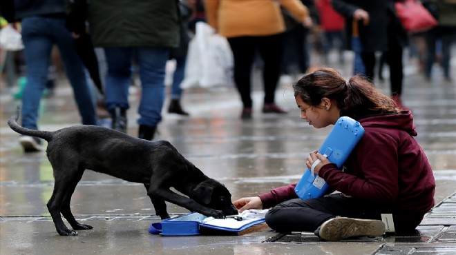 Yağmurlu bir kış gününde 13 yaşındaki Suriyeli Nuran ile sokak köpeği Bella'nın dostluğu, İzmir'in ünlü Kıbrıs Şehitleri Caddesi'ne yolu düşenlerin içini ısıtıyor.