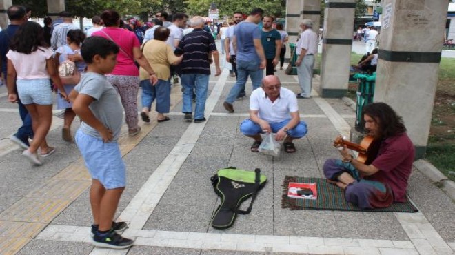 Konak Meydanı ile kentin simgelerinden olan tarihi İzmir Saat Kulesi'nin çevresi sıcak yaz günlerinde de İzmirlilerin uğrak yeri olmaya devam ediyor. Meydanda bulunan kuş yemi satıcıları, fotoğrafçılar ve çiçekçilerin yanı sıra sokak müzisyenleri de burada yerlerini alıyor. Sıcak havaya aldırmayan sokak müzisyenleri, şarkılar çalıp söylüyor, dinleyenler de bağışta bulunuyor. Konak Meydanı'ndaki müzisyenlerden İsmail Arslan (79), "Eşim vefat etti, çocuklar büyüyüp gitti. Tek başıma yaşıyorum. Keman çalmak bizde atadan geliyor. Keman dışında bağlama, cümbüş ve başka enstrümanları da çalabiliyorum. 2015 yılından beri burada keman çalıyorum. Sıcakta burada olmak zor ama bir sosyal güvencem yok, emeklilik yok. Bu işi mecburen yapıyorum, mesleğimi icra ediyorum. Çok şükür kazanıyoruz bir şekilde. Yazın daha iyi iş oluyor, kış geldiğinde yağış olduğu zamanlar çıkmıyorum. Hava açık olduğu zamanlar çıkıyorum. İnsanlar çok iyiler, İzmir'de sevenim çok. Bana saygılı davranıyorlar" dedi.