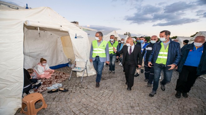 İzmir Büyükşehir Belediye Başkanı Tunç Soyer, “Henüz tablo daha netleşmeden, hasar tespitleri bile yapılmadan biz bir söz vermiştik. Tek bir ailenin, tek bir ferdini bile yaklaşan kış mevsimi öncesi çadır köşelerinde bırakmayacağız demiştik. Ve bırakmadık… Böyle büyük bir iddiayı ortaya atarken elbette arkamızda halkımızın desteği, İzmir Büyükşehir Belediyesi’nin imkanları ve devletimizin gücü olduğunu biliyorduk. O güven ve inançla, el ele, gönül gönüle vererek birlikte bir başarı hikayesi yazdık. Bir Kira Bir Yuva kampanyası ile kira desteği sağlananlar yeni evlerine yerleşti. Uzundere’deki konutlarımızın, eski Hilton Oteli’nin kapılarını açtık. Depremzedelerin bir kısmı ise AFAD'ın konteyner evlerinde ve yurtlarda geçici olarak barınıyor. Bugün depremden sonra kurulan son çadırı da kaldırdık” dedi.