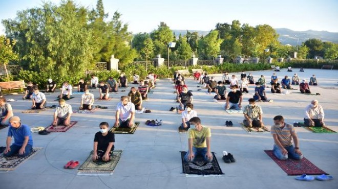 İzmir'de vatandaşlar, normalleşme süreci ile birlikte kısıtlamasız ilk Kurban Bayramı namazı nedeniyle camilere akın etti. Sosyal mesafe, maske kuralına uyan vatandaşlar cami içerisi ve bahçesinde saf tutarak yanlarında getirdikleri seccadeler üzerinde namazlarını kıldı.