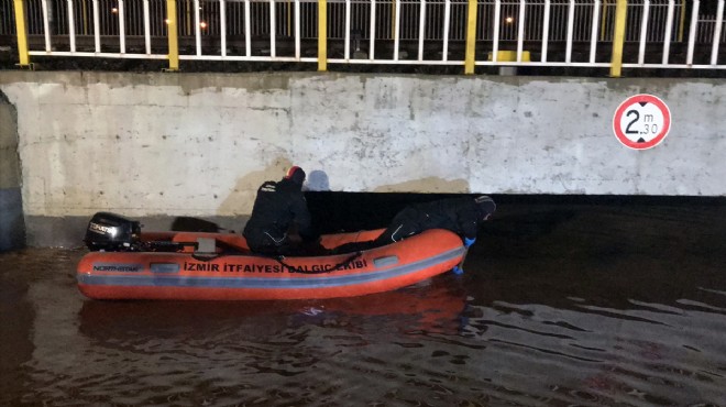 İzmir Büyükşehir Belediyesine bağlı İZSU ekiplerinin de iş makineleriyle destek verdiği kurtarma çalışmasında, su dolu alt geçidin içinde 35 JBZ 99 plakalı araca ulaşıldı. Sudan çıkarılan aracın içinde kimsenin olmadığı belirlendi.