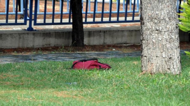 Atatürk Mahallesi'ndaki Tüpraş Halk Eğitim Merkezi yakınına bırakılan şüpheli okul çantasını gören çevre sakinleri, polise haber verdi. Olay yerine gelen ekipler, çantanın bulunduğu alana güvenlik şeridi çekti, İzmir İl Emniyet Müdürlüğü'nden uzman ekip istendi. Uzman ekip beklenirken olay yerine gelen TOKİ Ortaokulu 7'nci sınıf öğrencisi İlker Sedat B., çantanın kendisine ait olduğunu, okula getirmesi için arkadaşına bıraktığını, ancak arkadaşının da çantayı şaka olsun diye buraya bıraktığını söyledi. Paniğe kapılan İlker Sedat B., başından geçenleri anlatırken gözyaşlarını tutamadı. Polislerin korkacak bir şey olmadığını söylemesinin ardından sakinleşen öğrenci durumu anlatsa da her ihtimale karşı bomba imha ekibinin gelmesi beklendi.