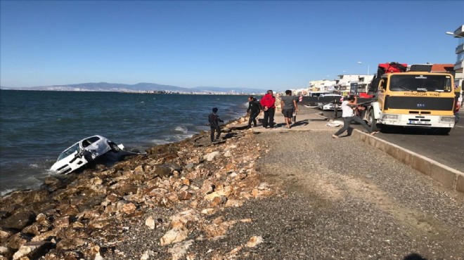Çarpmanın etkisiyle takla atan 35 UA 224 plakalı otomobil denize düştü. İhbar üzerine bölgeye Sahil Güvenlik Komutanlığına ait bot, deniz polisi, İzmir İtfaiyesinde görevli balık adamlar ve sağlık ekipleri sevk edildi.