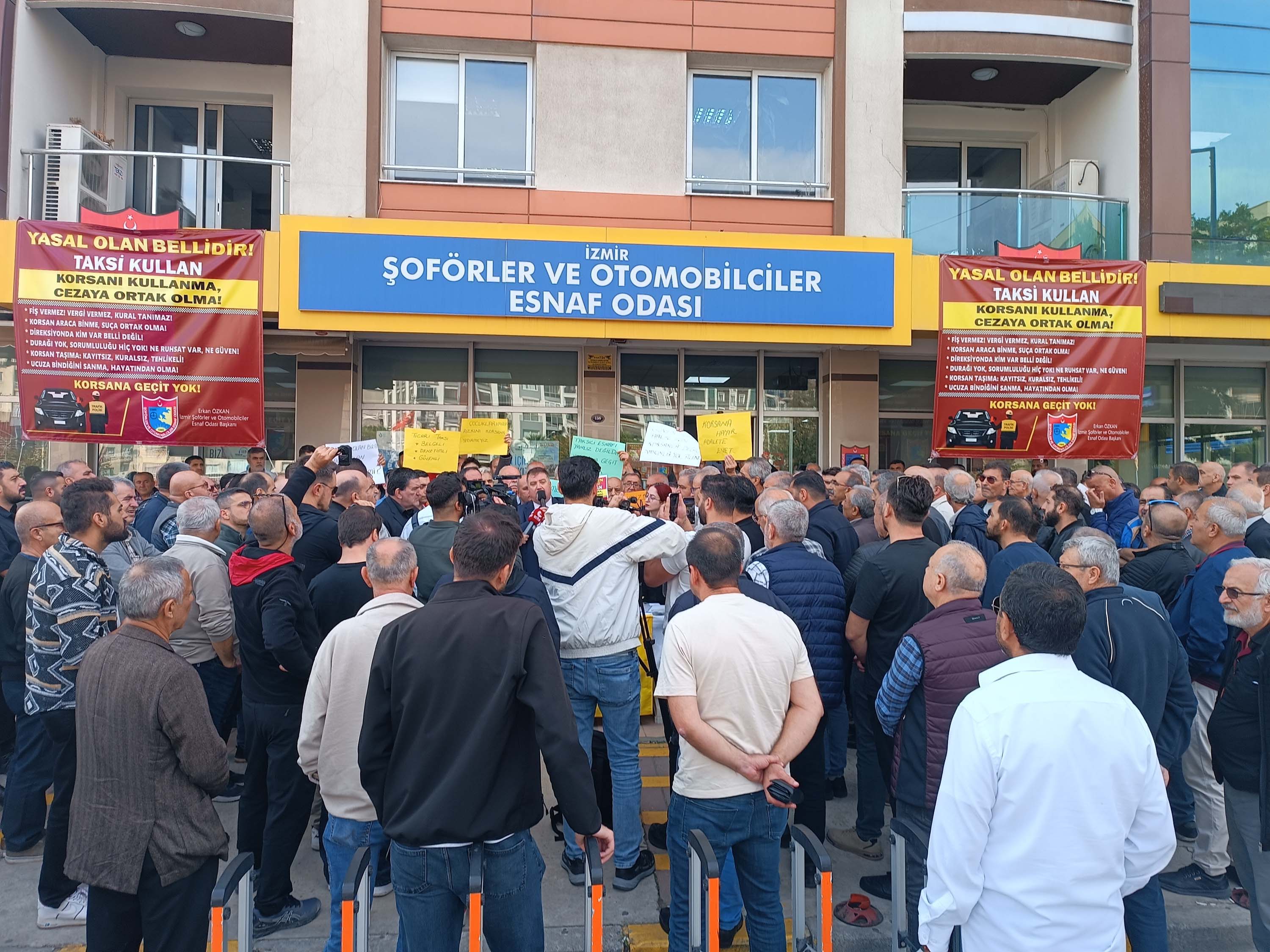 Taksici esnafı, İzmir Şoförler ve Otomobilciler Esnaf Odası öncülüğünde korsan taşımacılığa karşı oda binası önünde toplandı. Taksiciler, hazırladıkları pankartlarla korsan taşımacılığa tepki gösterdi. Korsan taşımacılığın hem esnafı hem de vatandaşları mağdur ettiğini söyleyen İzmir Şoförler ve Otomobilciler Esnaf Odası Başkanı Erkan Özkan, "Yasal olan bir meslek kuruluşu var. Ancak kaydı, kimliği ve denetimi olmayan kişiler tarafından yapılan taşımacılıkla kardeşlerimin emeği sömürülüyor, ekmeği çalınıyor. Bu durum artık toplumsal bir sorun haline geldi. 3-4 gün önce İzmir’de bir kadının korsan takside yaşadığı olay bunun en somut örneğidir” dedi.