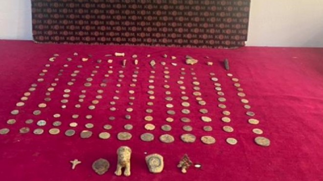İzmir'in Ödemiş ilçesinde Roma ve Bizans dönemlerine ait olduğu değerlendirilen 156 sikke ele geçirildi, 2 şüpheli gözaltına alındı.