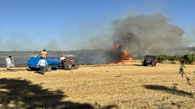 Karaağaç Mahallesi'nde evlere yakın alandaki tarım arazisinde henüz belirlenemeyen nedenle çıkan yangın, rüzgarın da etkisiyle büyüdü.