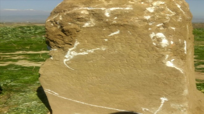 İş makinasıyla bir bölümünü çıkararak inceledikleri taşın tarihi eser olabileceğini düşünen iki çiftçi, jandarma ve müze ekiplerine bilgi verdi.
