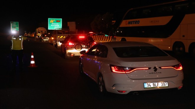 İzmir-Aydın ve İzmir-Çeşme otoyollarının çıkış noktalarında otomobil ve otobüsleri durduran ekipler, sürücülere alkol testi yaptı, evraklarını kontrol etti.