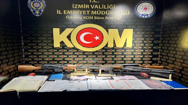 Şüphelilerin ev ve iş yerlerinde yapılan aramalarda 11 tapu senedi, 3 ruhsatsız tüfek, 1 ruhsatsız tabanca, 101 tabanca fişeği, 6 ajanda, 5 senet, 29 boş senet koçanı ele geçirildi.
