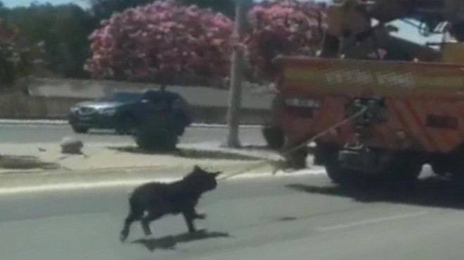 Çiğli'de meydana gelen olayda, kimliği belirsiz sürücü, iple vinç kamyonun arkasına bağlı olan köpekle trafikte hızla ilerledi. Bu ana tanıklık eden arkadan gelen sürücü, görüntü çekip sosyal medya hesabından paylaştı. Görüntüler kısa sürede binlerce kişi tarafından izlendi. İzleyenler sürücüye tepki gösterdi.