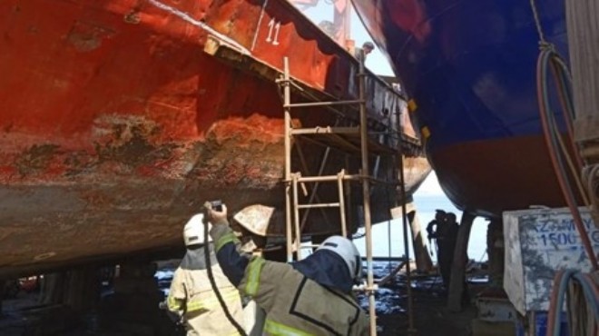 Altıevler Mahallesi'ndeki tersanede bir teknede tadilat yapıldığı sırada yangın çıktı.