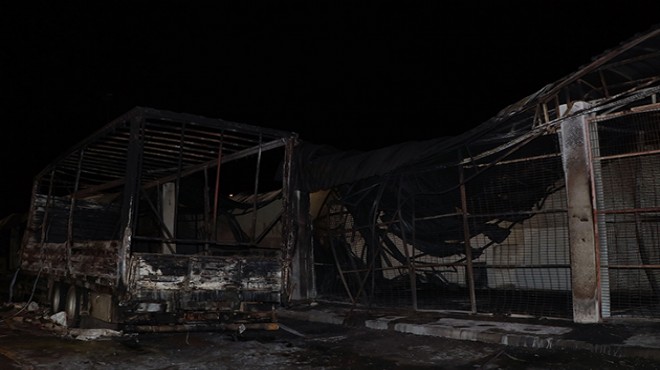 İzmir'in Buca ilçesindeki Sebze ve Meyve Toptancı Hali'nde çıkan yangında 10 dükkan ve bir kamyonda hasar oluştu.