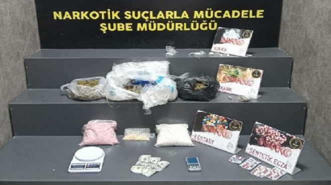 Narkotik Suçlarla Mücadele Şube Müdürlüğü ekipleri, Bayraklı ilçesinde bir ikamette uyuşturucu satışı yapıldığı bilgisi üzerine harekete geçti. Yapılan teknik ve fiziki takibin ardından adrese operasyon düzenlendi. Adreste yapılan aramada, 2 kilogram 517 gram esrar, 8 bin 997 ecstasy, çeşitli tür ve miktarda satışa hazır hale getirilmiş uyuşturucu madde ve 2 hassas terazi ile uyuşturucu madde ticaretinden elde edildiği değerlendirilen 16 bin 045 TL ve 400 dolar para ele geçirildi. Olayla ilgili gözaltına alınan B.A. ve Ö.F. sevk edildiği adliyede çıkarıldıkları mahkemece tutuklanarak cezaevine gönderildi.(DHA)