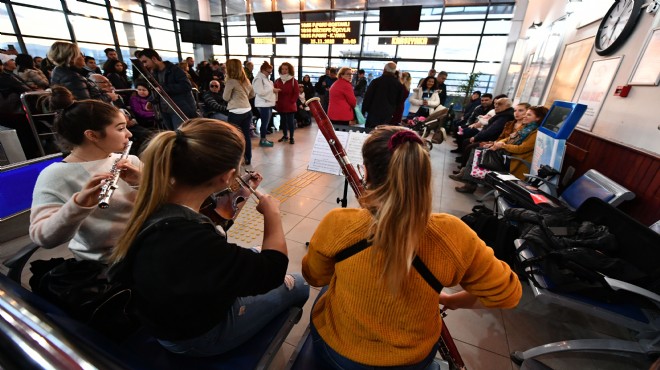 Genç müzisyenlerin sahne aldığı etkinlik kapsamında bu kez Alsancak Vapur İskelesi'nde keyifli dakikalar yaşandı. Günün yorgunluğu ile evlerine dönmek üzere iskeleye gelen yolcular, canlı müzik eşliğinde zamanın nasıl geçtiğini unuttu. Alkışlarıyla şarkılara eşlik eden İzmirliler, "Çok güzel ve ince bir düşünce. Vapur beklemek hiç bu kadar keyifli olmamıştı. Zamanın nasıl geçtiğini anlamadık" diyerek memnuniyetini dile getirdi. İzmir Büyü ;kşehir Belediyesi, Genç Sahne etkinliği çerçevesinde Bornova Metro İstasyonu, Bostanlı İskelesi, Karşıyaka ve Şirinyer İZBAN istasyonlarında sürpriz konserler düzenledi