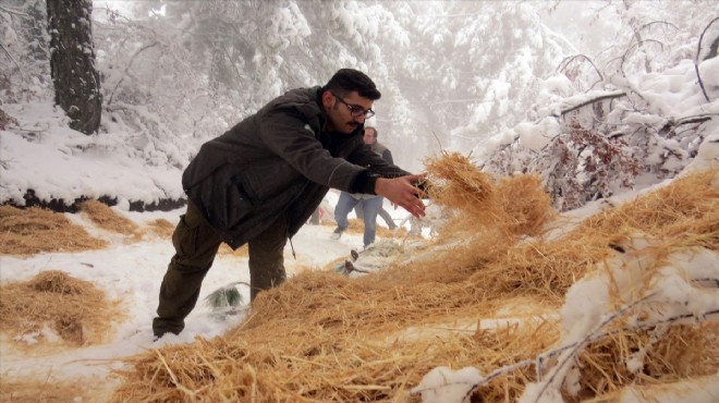 İzmir'in Ödemiş ve Bayındır ilçelerinde kış şartları dolayısıyla yiyecek bulmakta zorlanan yaban hayvanları için yem takviyesi yapıldı.