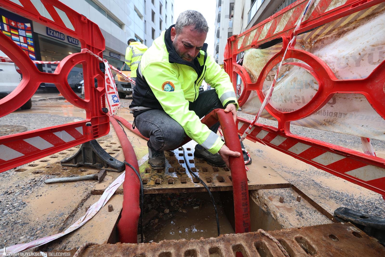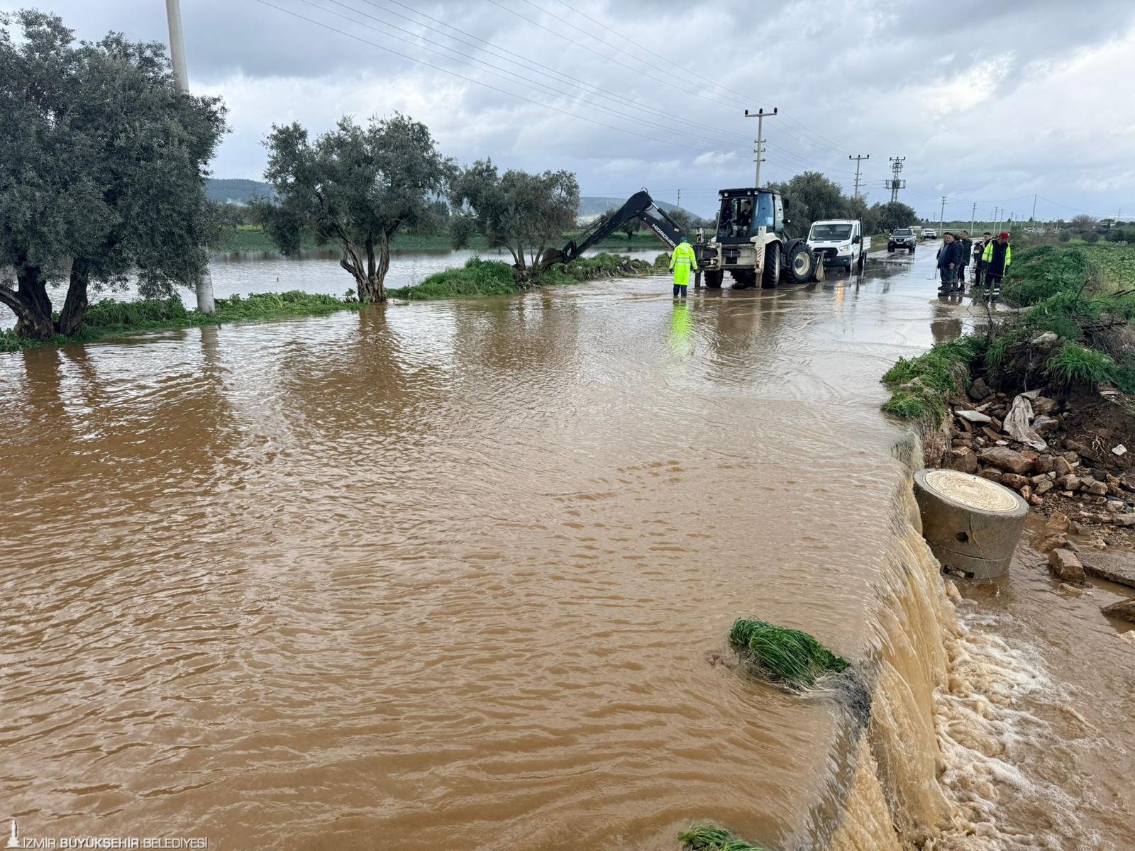 İzmir Büyükşehir Belediyesi kent genelinde etkili olan yağışların ardından sahadaki çalışmalarına hız kesmeden devam ediyor.