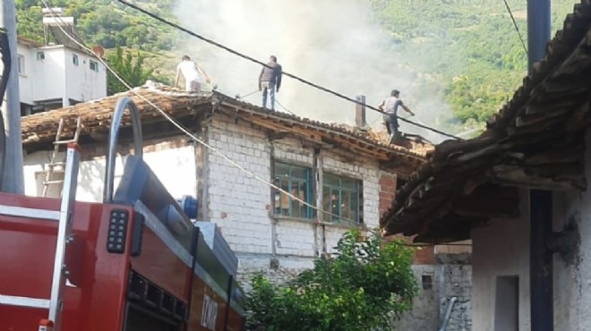 Söndürülen yangında Hızlı'ya ait ev kullanılamaz hale gelirken bitişik binanın çatı katı hasar gördü.