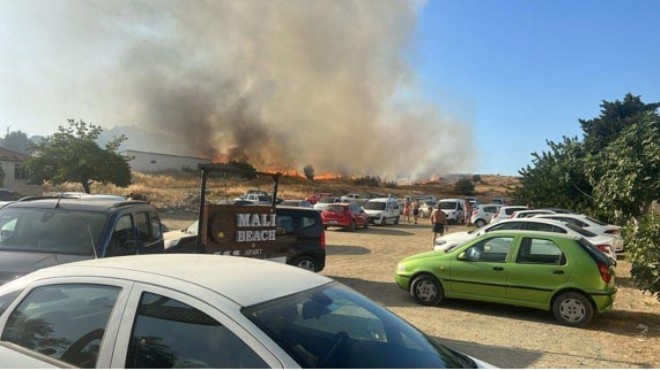 Seferihisar'ın Akarca Mahallesi'nde bulunan iki beach clubın arasındaki otopark üzerindeki otlukta saat 18.30 sıralarında yangın çıktı. Alevler, kuru otlar nedeniyle kısa sürede büyüyerek onlarca aracın bulunduğu otopark ve yakındaki sitelere doğru ilerlemesi panik yarattı. Bazı vatandaşlar tedbir amacıyla evlerini terk ederken, ihbar üzerine bölgeye çok sayıda itfaiye ekibi sevk edildi. Alevlerin ulaştığı otoparkta iki otomobil son anda uzaklaştırılarak alevlerden kurtarıldı. İtfaiye ekipleri, alevleri 1 saatlik çaba sonucu otoparktaki araçlara ve sitelere ulaşmadan söndürdü. (DHA)