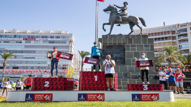 Maratonda genel klasmanda zafer Kenya ve Etiyopyalı atletlerin oldu. Cumhuriyet Meydanı-İnciraltı arasındaki parkurda koşulan yarışta kadınlarda Kenyalı Betty Jemaita Chepkwony 1.14.21, erkeklerde ise Etiyopyalı Getaye Gelaw 1.02.42 dereceleriyle genel klasmanda birincilikleri elde etti. Türkiye’den Hasibe Demir 1.21.48 ve Meryem Kılınç Gündoğdu 1.23.33 ile kadınlarda diğer dereceleri paylaşırken, erkeklerde Hüseyin Can 1.05.06 ile ikinci, Ömer Alkanoğlu 1.05.26 ile üçüncülük kürsüsüne çıktı.