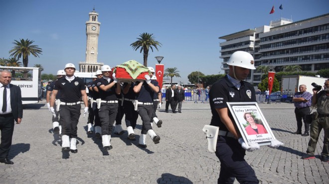 Işılay Saygın'ın Türk bayrağına sarılı, üzerinde başörtü bulunan tabutu, tören için Konak Meydanı'na getirildi. Polis merasim mangasının omuzlarında getirilen Işılay Saygın için, ağabeyleri Metin Saygın, Işık Saygın'ın yanı sıra İzmir Valisi Erol Ayyıldız, İzmir Büyükşehir Belediye Başkanı CHP'li Tunç Soyer, AK Parti Genel Başkan Yardımcısı Hamza Dağ, eski bakanlar Vecdi Gönül, Hakan Tartan, Oktay Vural, milletvekilleri, belediye başkanları, siyasi partilerin il yöneticileri, görevdeki ve emekli olan bürokratlar, eski başbakan Binali Yıldırım'ının Başdanışmanı Ömer Sertbaş ile sevenleri bir araya geldi.