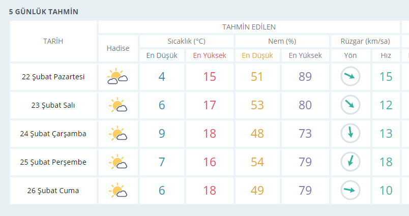 İZMİR İÇİN 5 GÜNLÜK HAVA TAHMİN RAPORU