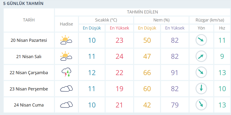 5 GÜNLÜK HAVA RAPORU:
