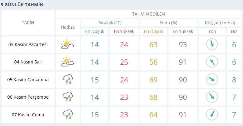 Çarşamba günü ise kentte gökgürültülü sağanak yağış etkili olmaya başlayacak.