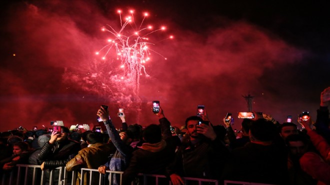 Yeni yıla girilmesiyle, Cumhuriyet Meydanı’nda havai fişek şovuna başlandı. 7 dakika süren görsel şov, izleyenleri büyüledi. Şehrin birçok noktasından görülebilen havai fişek gösterisini telefonlarıyla çektikleri videolar ve fotoğraflarla ölümsüzleştirdi.