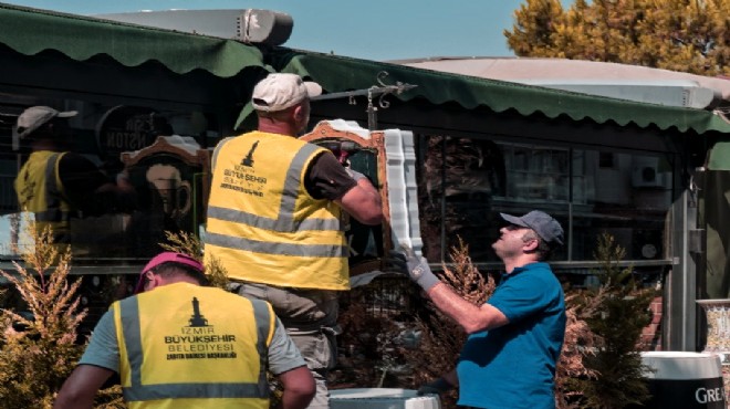 Çalışmalar hakkında bilgi veren İzmir Büyükşehir Belediyesi Zabıta Dairesi Başkanlığı Denetim Şube Müdür Vekili Vedat Ayyıldız, “İzmir genelinde yeşil ve kamusal alan üzerinde işgal edilmiş unsurlara yönelik çalışmalarımızı Güzelyalı ve Buca’da devam ettiriyoruz. Konak ilçemize bağlı Güzelyalı, Mithatpaşa bölgesinin kara tarafındaki işletmelerimizin kullandığı servis alanı ve işletme arasında bulunan, İzmir Büyükşehir Belediyesi Park ve Bahçeler Dairesi Başkanlığı’nın çiçeklerle donattığı yeşil alanları işletmelerimizin kendi kullanım alanına çevirmeleri, beton dökmeleri, saksı ve masa, sandalye koymaları üzerine temizlik yapıyoruz. 23 işletmemiz ve Yalı İşadamları ve İşletmeciler Derneği Rıfat Erdal’ın da destekleriyle alanın tekrar düzenlenmesini sağladık. Şu anda işgale neden olan bir unsur kalmadı. Yeşil alanların İzmir Büyükşehir Belediyesi Park ve Bahçeler Dairesi Başkanlığı tarafından tekrar düzenlenmesi ile ilgili faaliyetler devam ediyor” dedi.