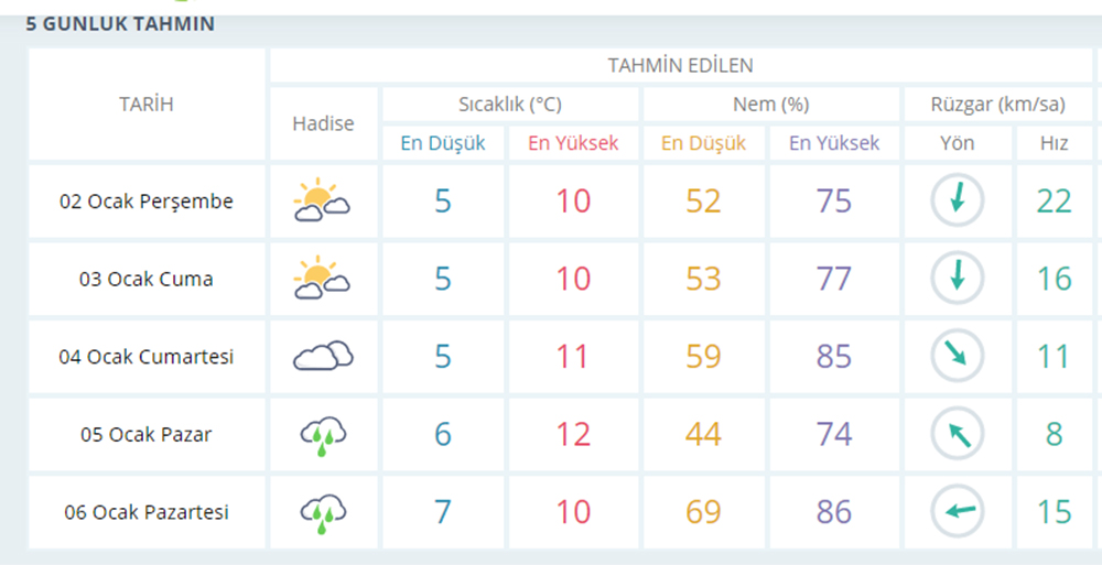 İZMİR İÇİN 5 GÜNLÜK HAVA TAHMİN RAPORU