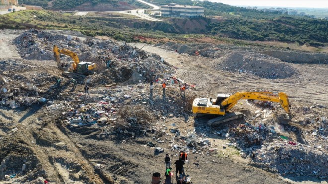 Depremde yıkılan Rıza Bey, Emrahlar, Doğanlar ve Yağcılar apartmanlarından çıkan moloz yığını, Menemen ilçesi Koyundere Mahallesi'nde bulunan güvenlik depolama sahasına götürüldü.