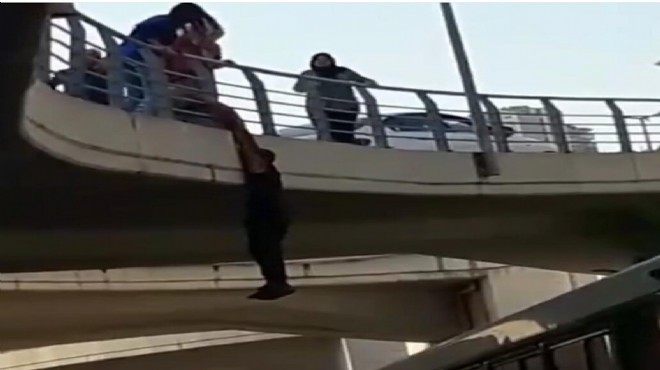 A.E. bir süre sonra elleriyle köprü demirini tutup, kendisini boşluğa sarkıttı. Olayı gören çevredekilerden bazıları boşlukta salınan A.E.'nin yanına geldi. Çevredekilerden bazıları durumu sağlık ve itfaiye ekiplerine bildirdi bazıları da A.E.'nin elinden tutup yukarı çekmeye çalıştı. Yardıma gelen birkaç kişi sayesinde, A.E. itfaiye ve sağlık ekipleri gelmeden yukarı çekilerek köprüye çıkarıldı. Olay yerine gelen polis, A.E.'yi ifadesini almak üzere emniyete götürdü. (DHA)