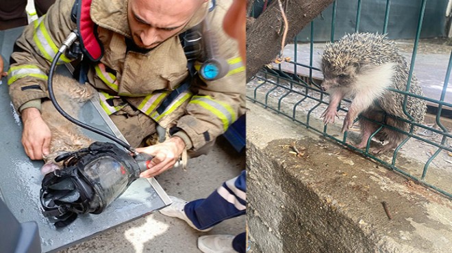 Bir diğer kurtarma operasyonu da Konak Güzelyalı’da yapıldı. İhbar üzerine 40. Sokak’ta tel örgüler arasında sıkışan bir kirpinin imdadına İzmir Büyükşehir Belediyesi itfaiye personeli yetişti. Ekipler, sıkıştığı için hareket edemeyen kirpiye önce su içirdi, ardından telleri keserek hayvanın yeniden özgürlüğüne kavuşmasını sağladı.