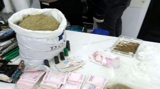 İzmir İl Emniyet Müdürlüğü ekipleri, bugün, uyuşturucu madde bulunduğu belirlenen Konak ilçesindeki bir eve operasyon düzenledi. Çarşı ve mahalle bekçileri de operasyona destek verdi. Evde yapılan aramada 2 kilogram bonzai ile uyuşturucu satışından elde edildiği değerlendirilen 84 bin TL ele geçirildi. Evde bulunan şüpheliler H.K., V.E. ve İ.K., gözaltına alındı. Şüphelilerin polisteki işlemlerinin sürdüğü bildirildi. (DHA)
