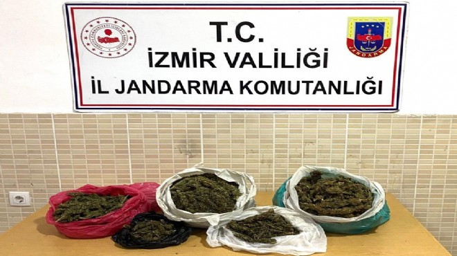 Kiraz ilçesinde bir adreste 3 kilogram kubar esrar, 2 kök kenevir bitkisi ele geçirildi, 3 şüpheli gözaltına alındı. Şüphelilerden 1'i çıkarıldığı adli makamlarca tutuklandı. (AA)