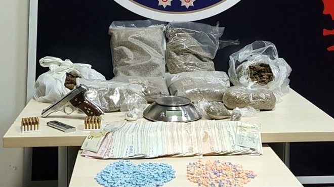 Adrese operasyon düzenleyen ekipler, evde yapılan aramada 2 kilo 100 gram bonzai, 850 gram esrar ve 850 uyuşturucu hap, 1 tabanca ve bu tabancaya ait 1 şarjör ile 51 mermi ile uyuşturucu satışından elde edildiği değerlendirilen 16 bin 840 lira ele geçirildi.