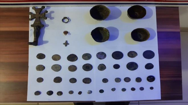 Operasyonda 4 kase, bir bronz yüzük, bir mühür, bir bronz kolye ucu, bir bronz obje ile 37 bronz-gümüş sikke olmak üzere 45 tarihi eser ele geçirildi.