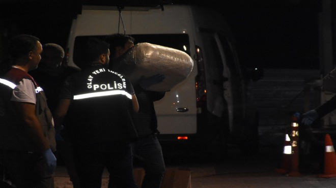 İzmir'in Güzelbahçe ilçesinde 30 Eylül'de, GBT sorgulaması sırasında kaçan bir şüphelinin düşürdüğü anahtardan yola çıkılarak minibüste yaklaşık 700 kilogram "skunk" ele geçirilmiş, uyuşturucuyla ilgili 2 şüpheli gözaltına alınmıştı. (AA)