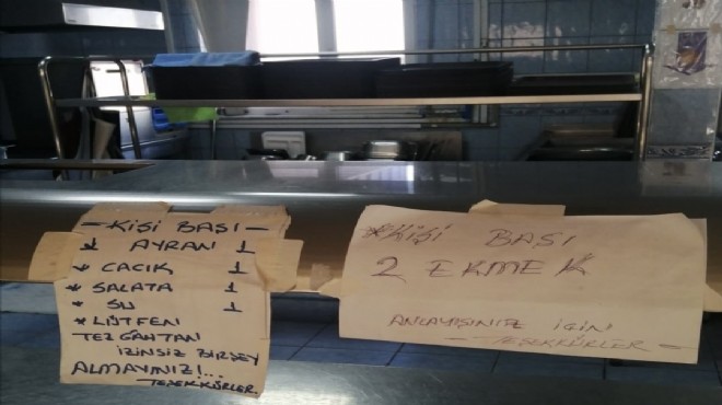 Bu görüntüler İzmir Bayındır Devlet Hastanesinden. Hastanedeki kahvaltı menüsü ve hastane yemekhanesindeki personele yönelik yazılmış olan yazı.